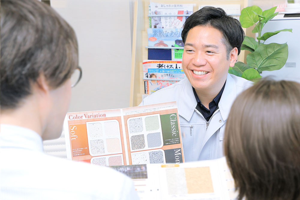 どんなご依頼にも感謝の気持ちを込めて向き合い、自分の家のように親身に対応します。「もし自分の家だったらどうしてほしいか」を常に考えながら工事に臨んでいます。仕上がりの美しさはもちろんのこと、工事中の細かなやりとりや現場での態度にも誠実さを徹底し、「頼んでよかった」と心から思っていただけるよう、一件一件丁寧に取り組んでいます。
